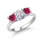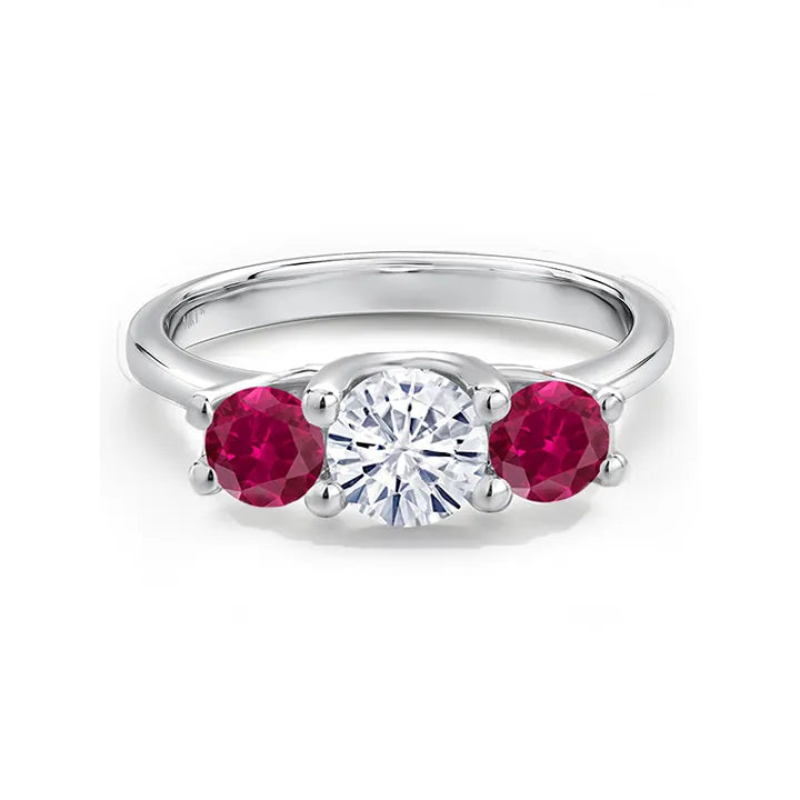 Moissanite and Ruby 3 Stone Engagement Ring
