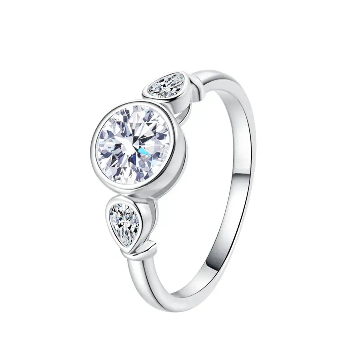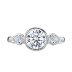 Pear Shaped Side Stone Bezel Three Stone Moissanite Ring