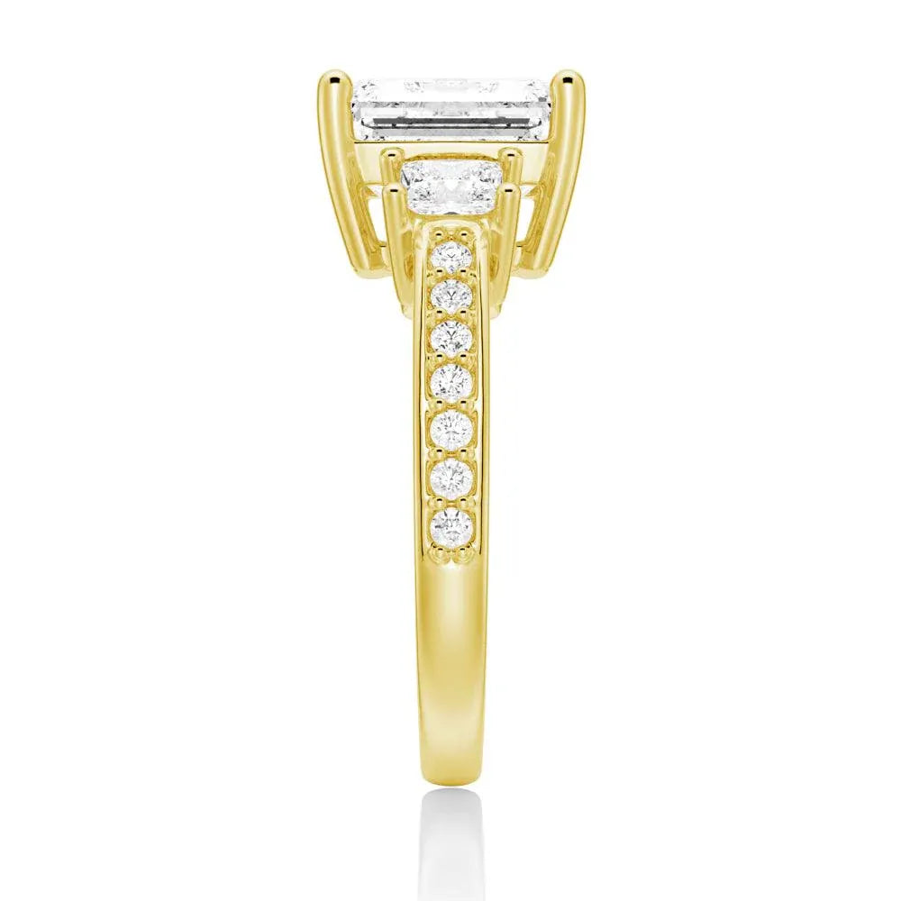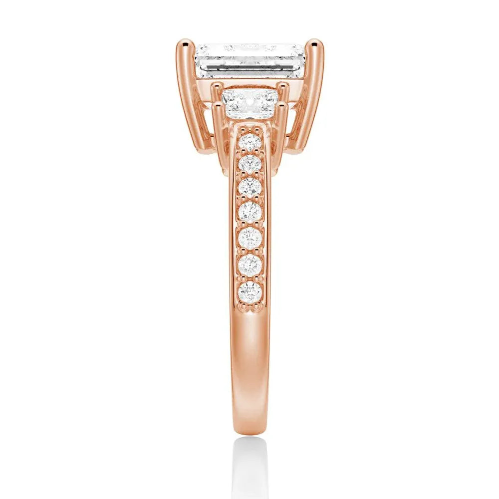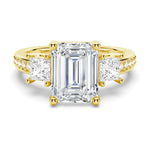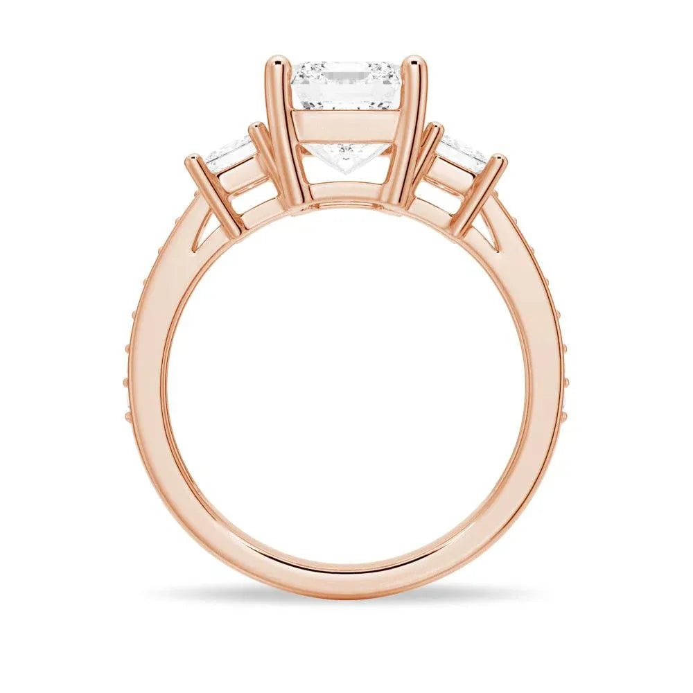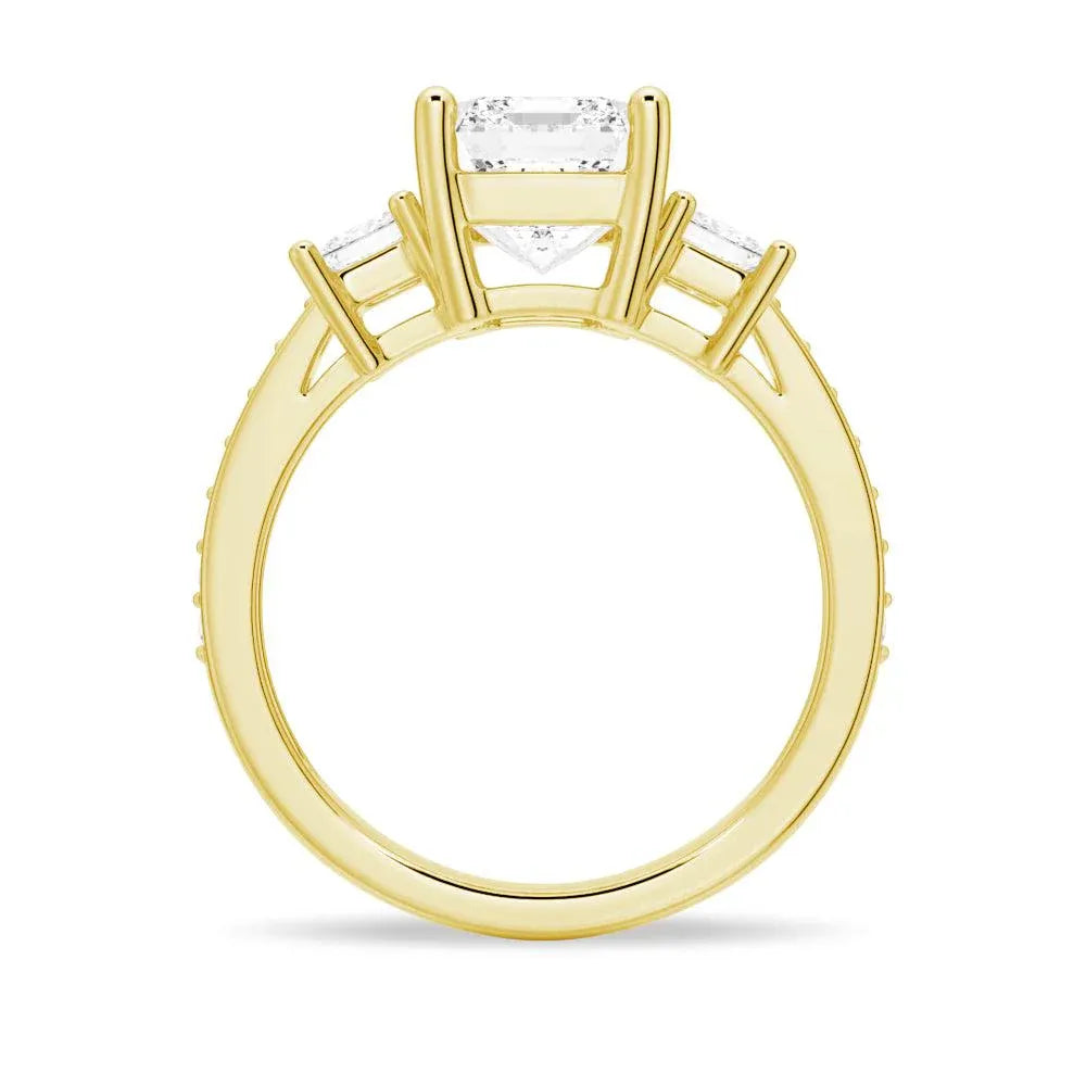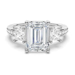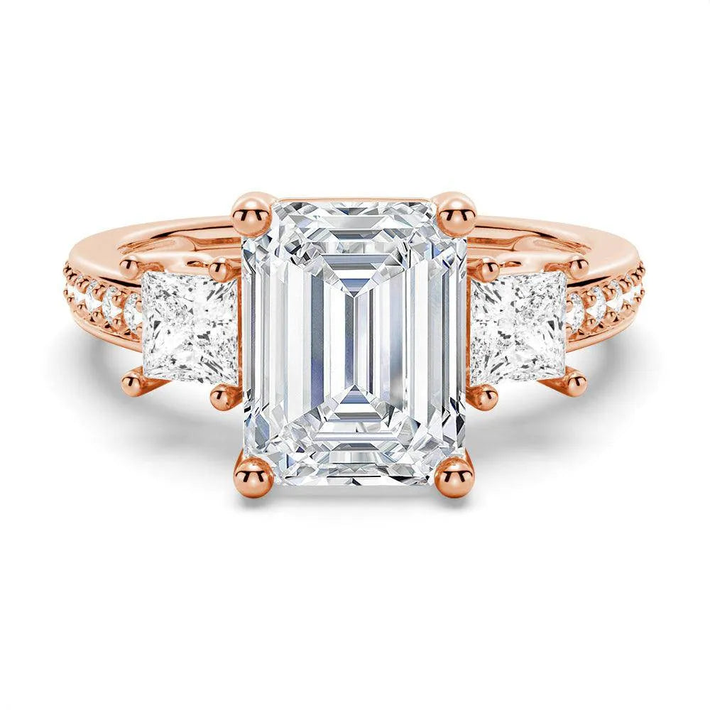 Princess Three Stone Emerald Moissanite Engagement Ring