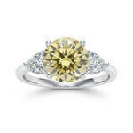 Trillion Side Stone Three Stone Yellow Round Moissanite Engagement Ring