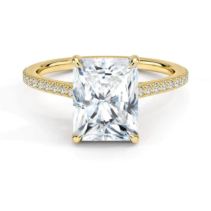 Cathedral French Basket Pave Radiant Moissanite Engagement Ring