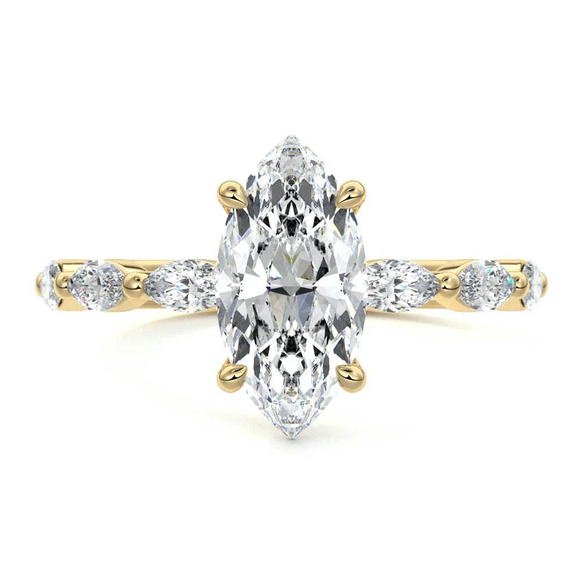 Marquise Sidestone Marquise Moissanite Engagement Ring