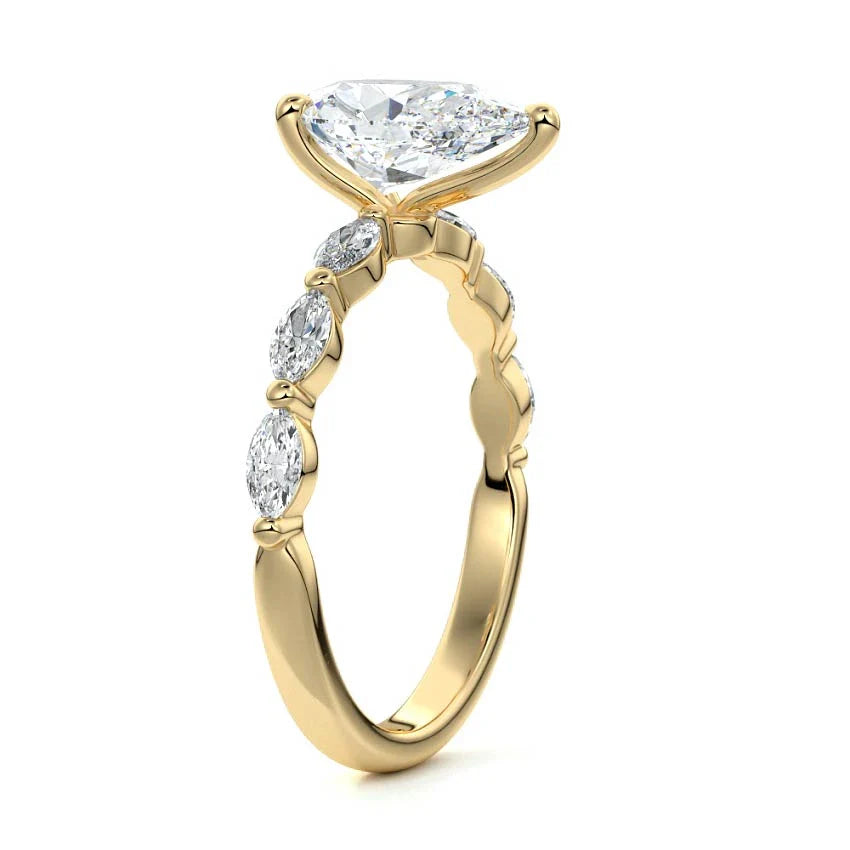 Marquise Sidestone Pear Moissanite Engagement Ring