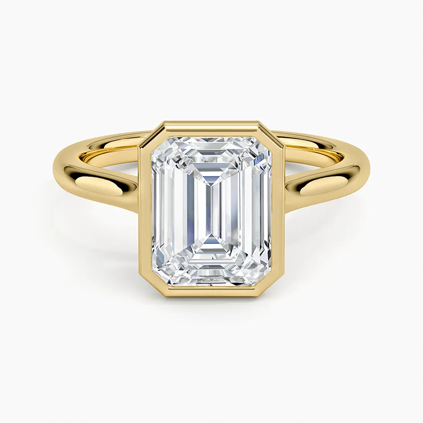 Solitaire Bezel Emerald Moissanite Engagement Ring
