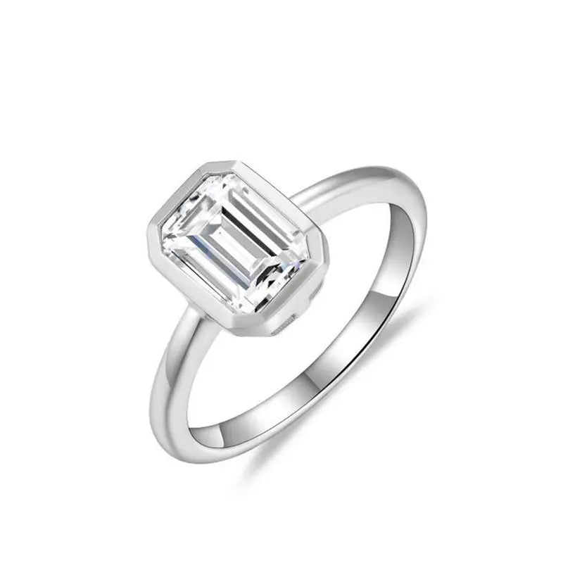Solitaire Bezel Emerald Moissanite Ring 2.0 ct