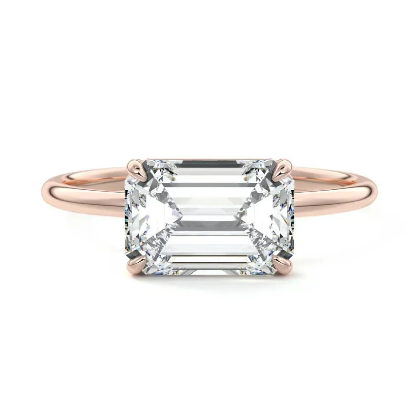 Solitaire East-West Emerald Moissanite Engagement Ring
