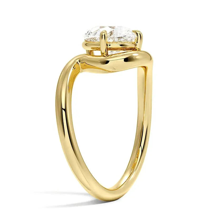 Solitaire Wave Band Emerald Moissanite Engagement Ring