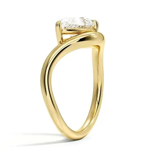 Solitaire Wave Band Pear Moissanite Engagement Ring