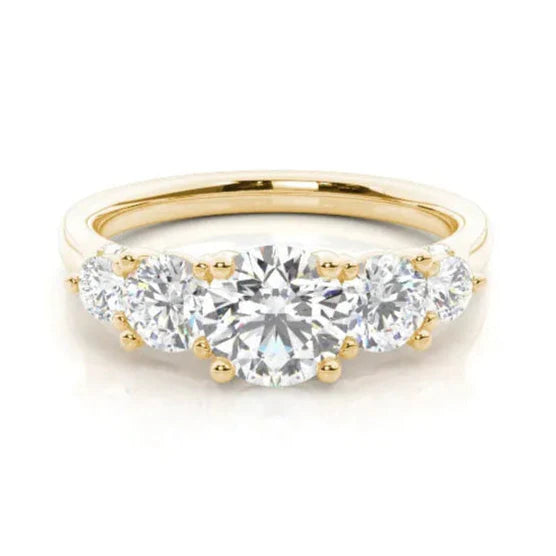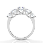 Weighing 3.6 carats in total, this five-stone Moissanite ring delivers extraordinary brilliance and depth. Each Moissanite sparkles with exceptional fire and radiance, capturing the perfect balance of luxury and elegance.
