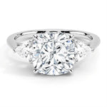 Triangle Side Stone Three Stone Cushion Moissanite Engagement Ring