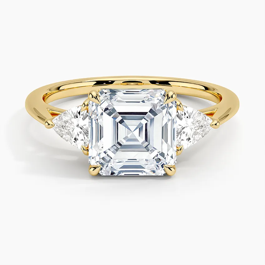 Trillion Cut Three Stone Asscher Moissanite Engagement Ring