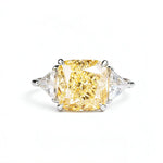 Trillion Side Three Stone Yellow Cushion Moissanite Engagement Ring