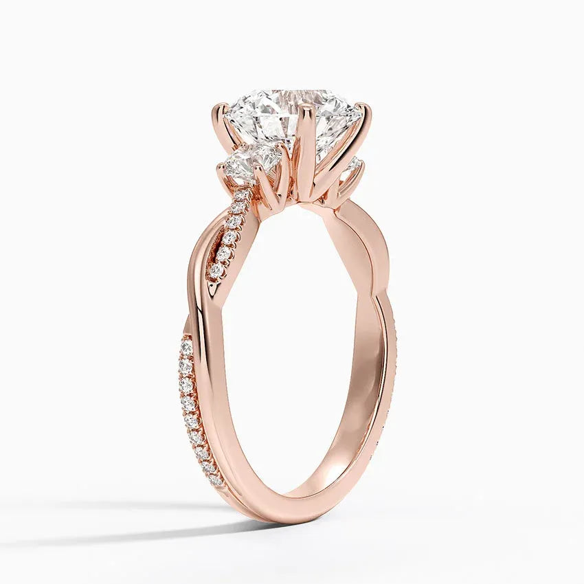 Twisted Band Round Cut Three Stone Moissanite Engagement Ring