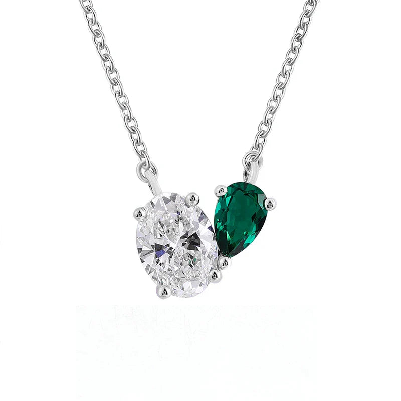 Oval Moissanite&Pear-shaped Emerald Toi Et Moi Pendant