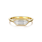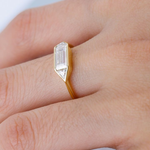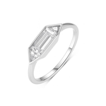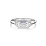 Total weight 1.4 carats. A stylish ring composed of uniquely cut moissanite.